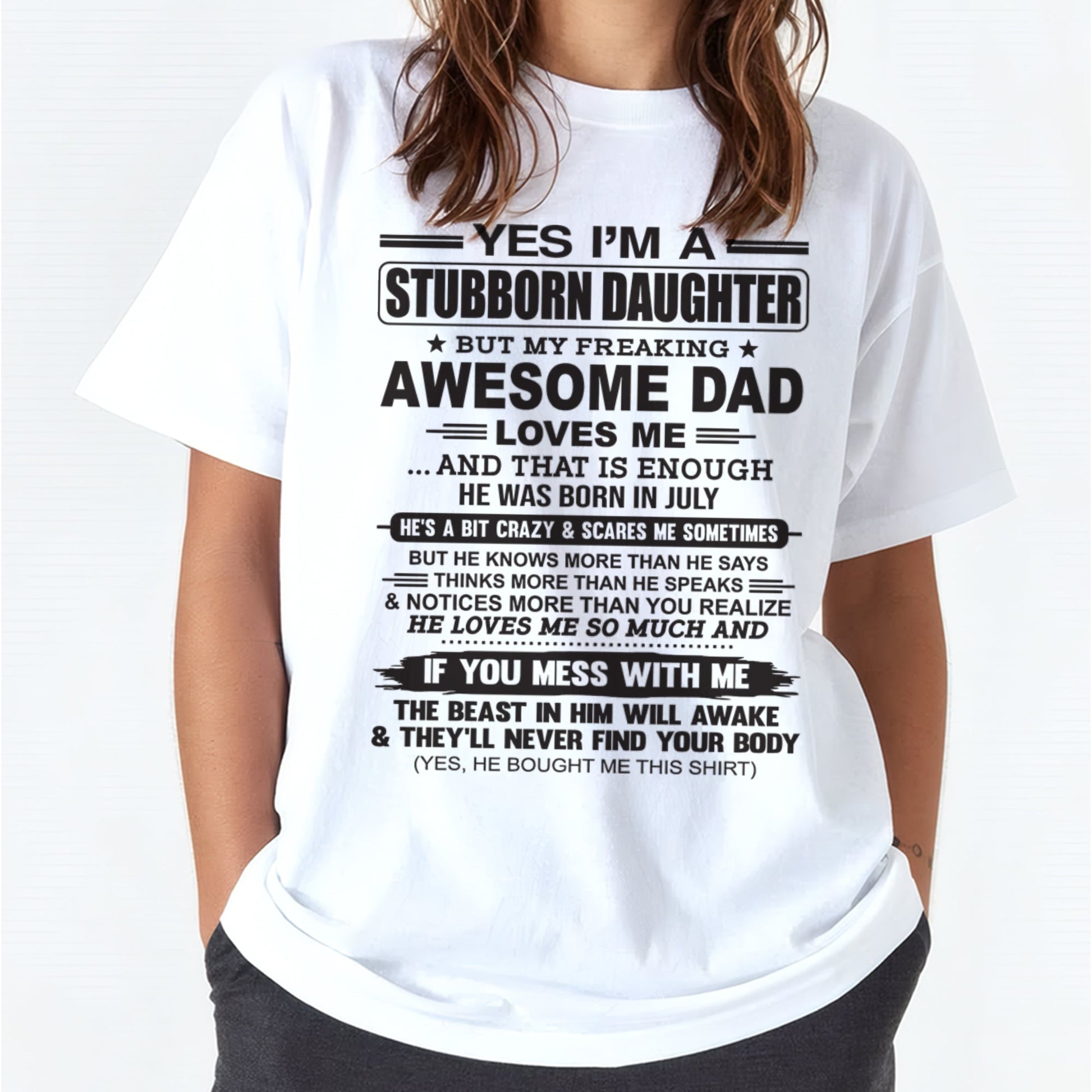 Yes I’m A Stubborn Daughter T-Shirt – Birthday Gift From July Dad / Man - top07 (SKU07-186-07)